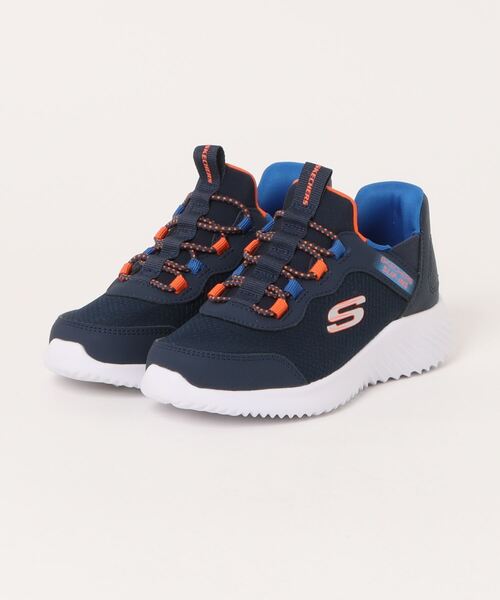 Effortless comfort to start their day is here with Skechers Hands Free Slip-ins®: Bounder – Brisk-Burst. Designed with our exclusive Heel Pillow™, this TOUCHLESS FIT® slip-on style features a mesh and synthetic upper with stretch laces and a cushioned Skechers Air-Cooled Memory Foam® insole.