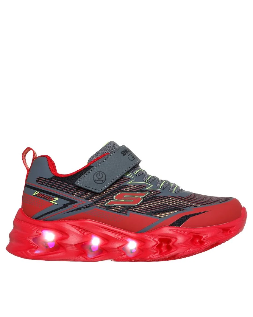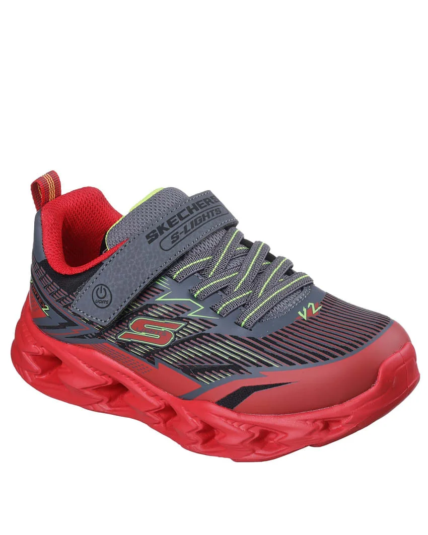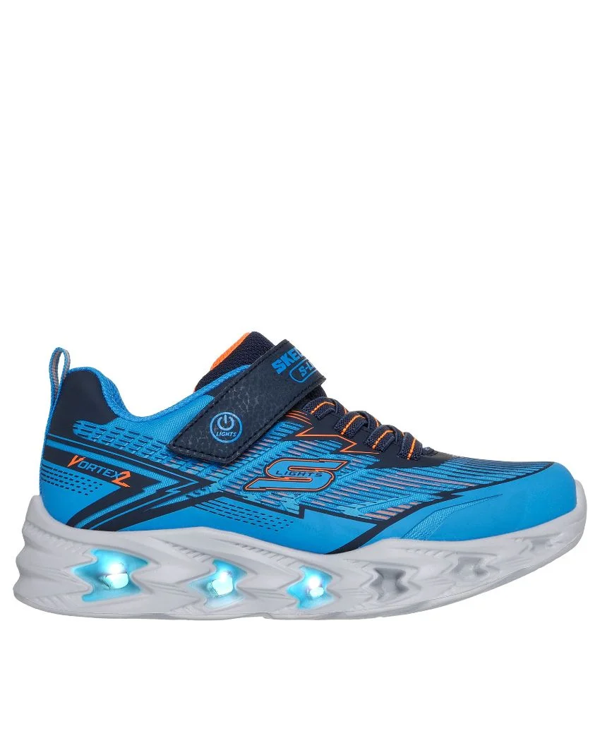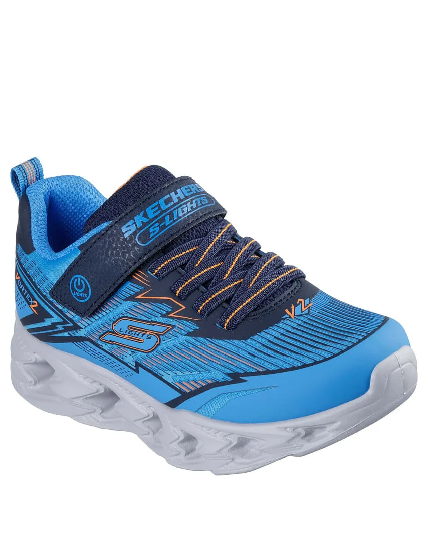 Light up the playground in eye-catching comfort with Skechers S-Lights®: Vortex 2.0 – Veltrox. This lighted Skechers adaptive closure design features a lightweight synthetic and mesh upper with a 3D haptic print, stretch laces, an adjustable instep strap, and a cushioned comfort insole.