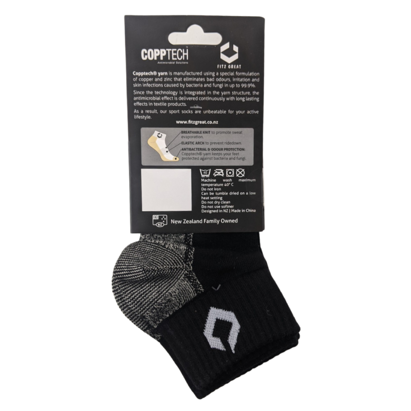 A well-fitted sock that keeps your feet comfortable and healthy to make the most of your sports or everyday activities. Using a certifie formulation of copper and zinc (Copptech yarn)Â it keeps bad odours, irritation, and skin infections away.