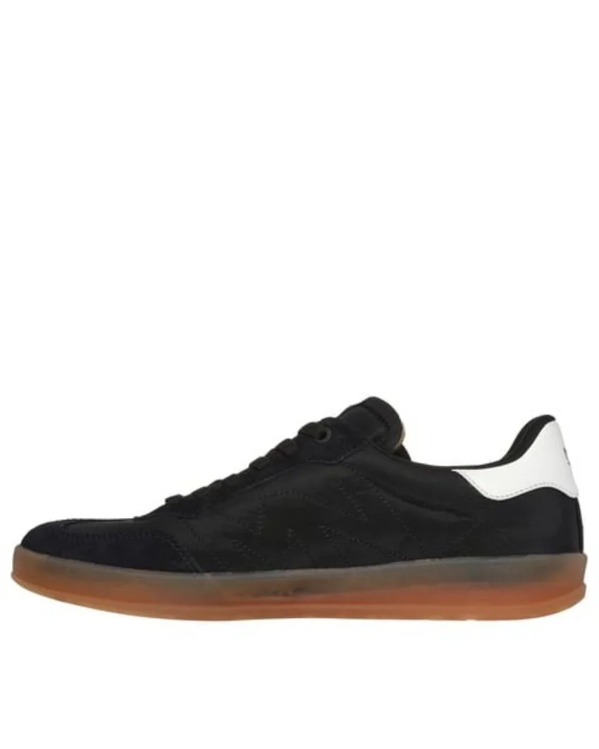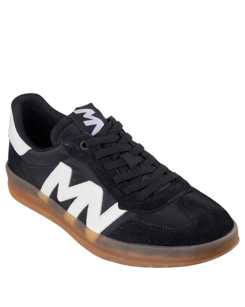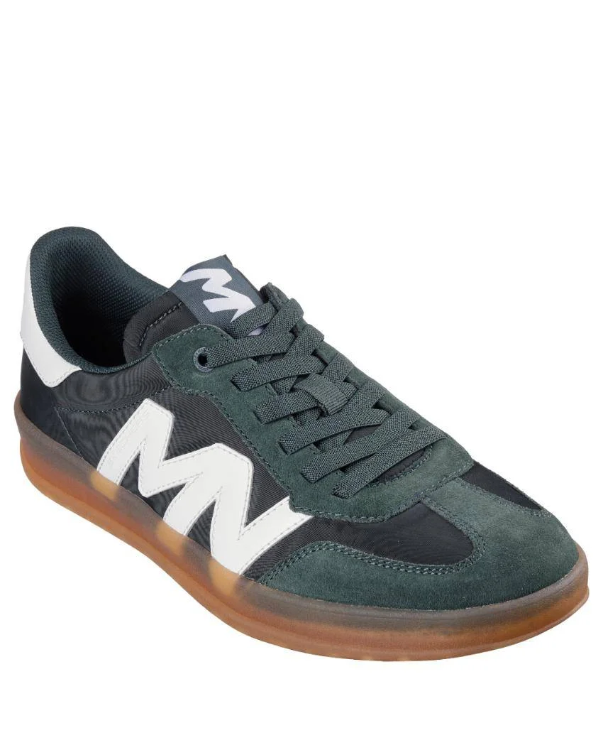 Stay comfortable in modern classic vibes wearing the trend-right Mark Nason® Skechers: New Wave Cup – The Rally. This retro court style features a stitched nylon and synthetic upper with genuine suede overlays, stretch laces and a cushioned Memory Foam Lux insole.