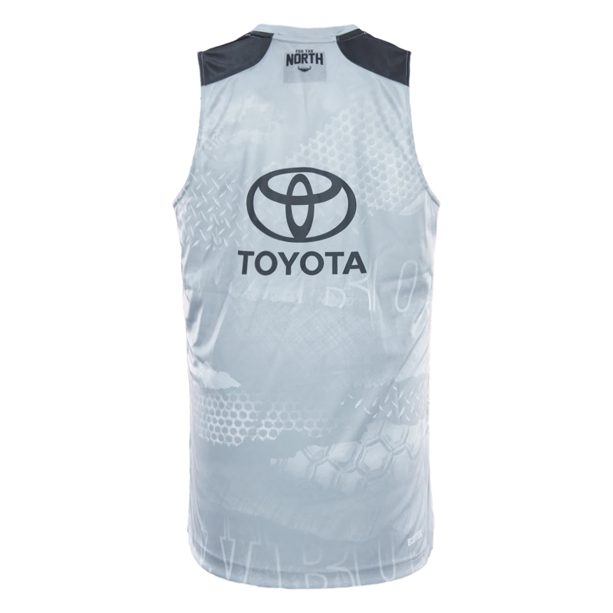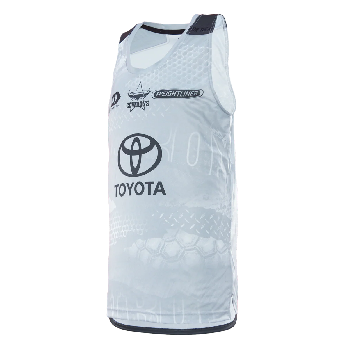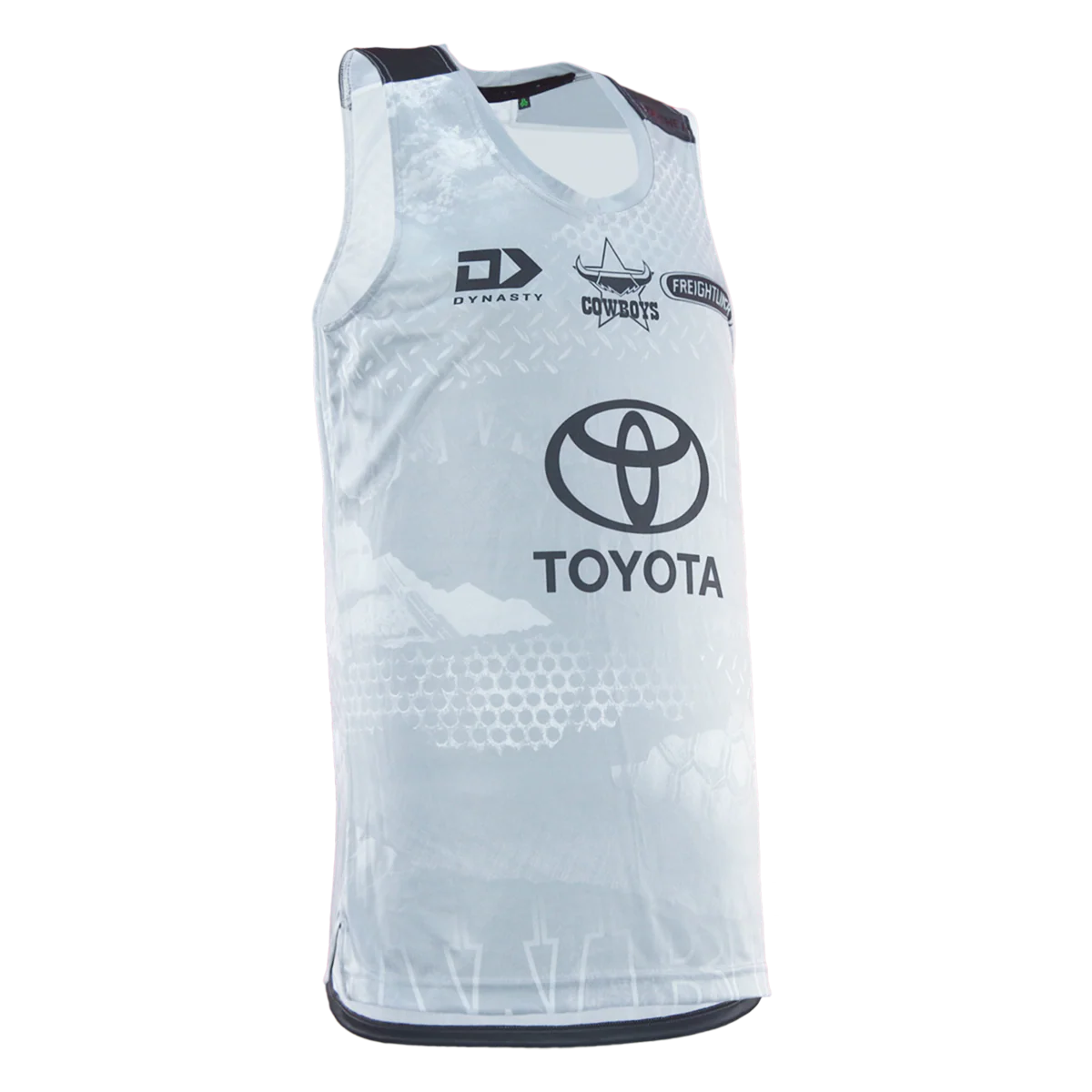 Train in style this 2026 season with the blue Cowboys Training Singlet, also available in grey. The iconic design pays homage to the region’s rich identity, incorporating layered textures inspired by croc and turtle skins, snake scales, ute trays, corrugated iron, flannelette patterns, cracked earth, and reef formations.