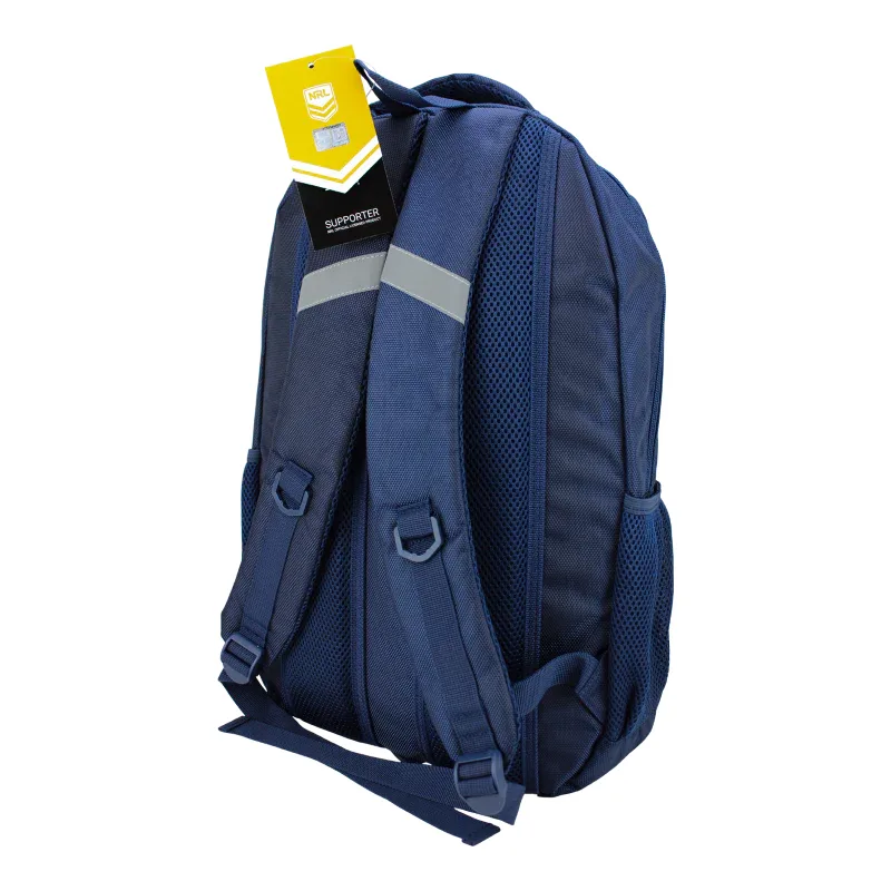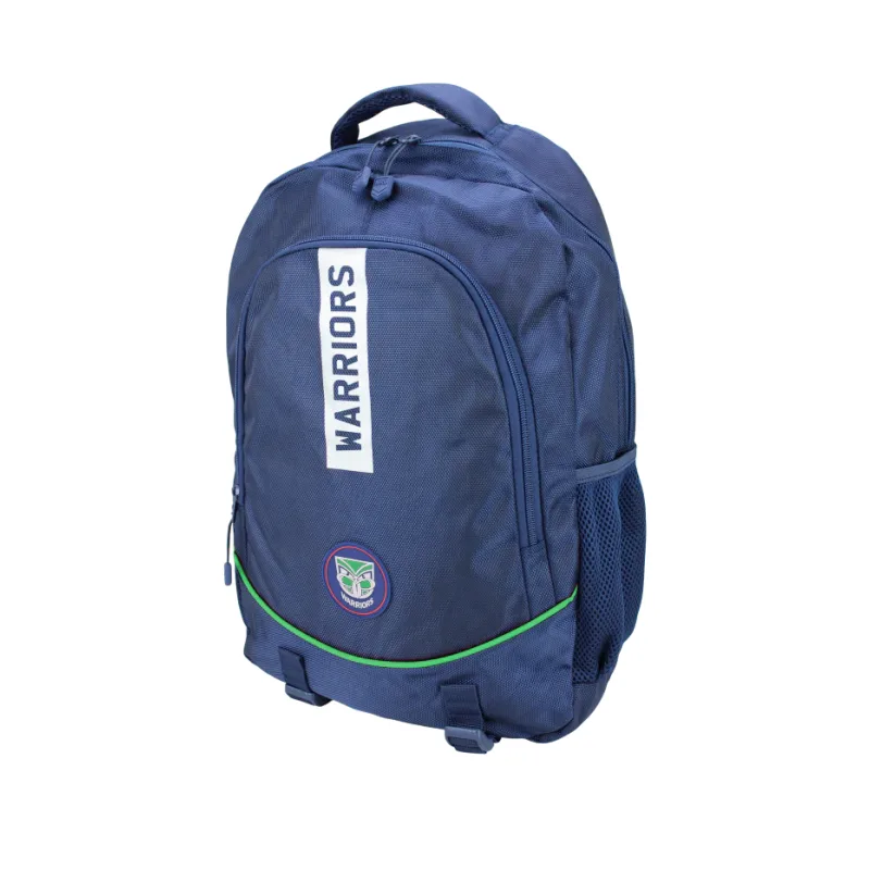 The NRL Warriors Sterling Backpack combines durability and functionality with official licensed design. Crafted from heavy-duty 1680D nylon, it features dual compartments, a dedicated laptop sleeve, and a mesh side pocket to keep your essentials organized. Measuring 49 x 32 x 12 cm, it offers ample space for daily use. The club name is displayed in reflective print, proudly showcasing your support.Â