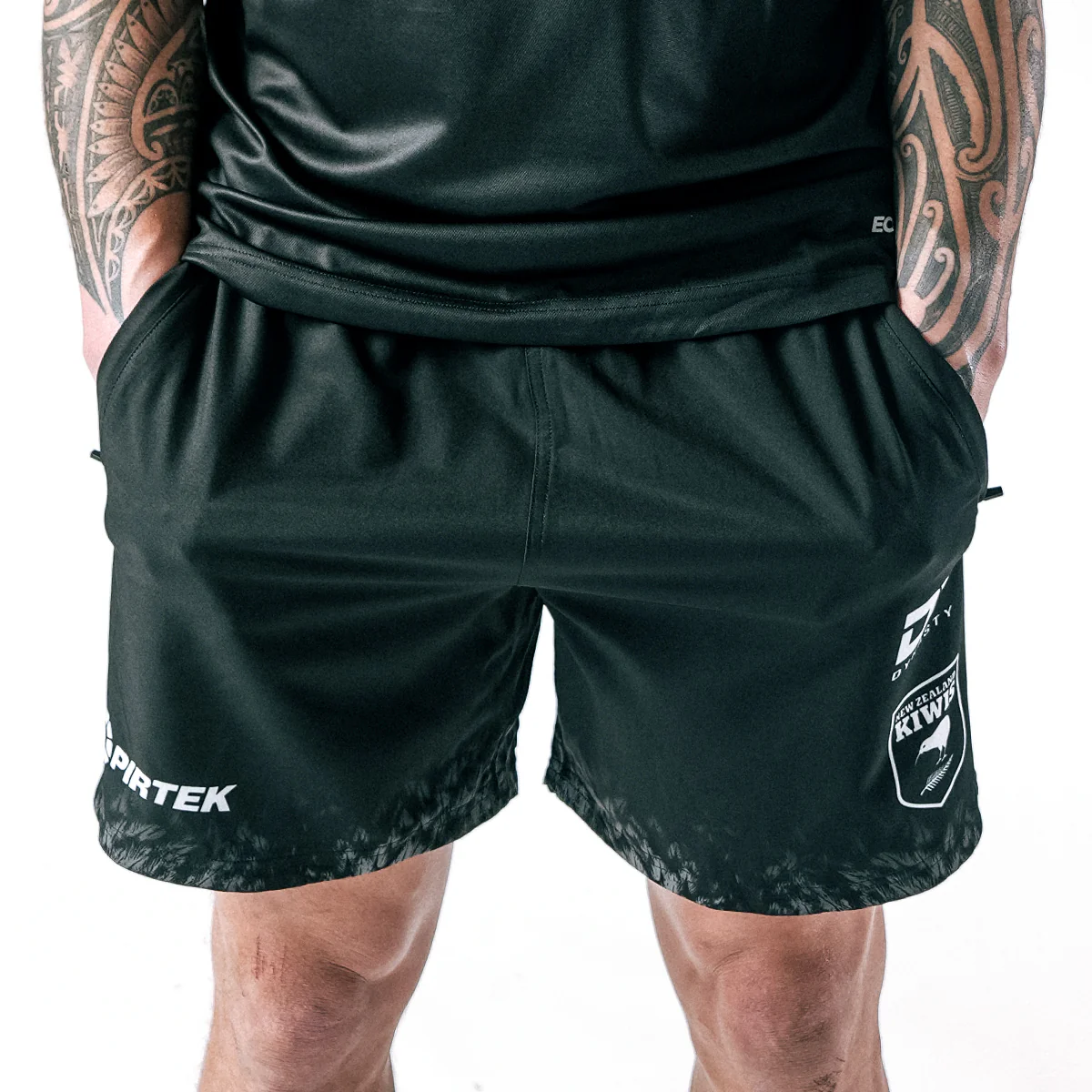 rain like a professional in our 2025 NZRL Kiwis Men’s Gym Shorts. In the iconic Kiwis colours, these shorts have lightweight performance whether you’re kicking goals or kicking back. The premium ribbing on the side and elastic waistband allows for ultimate comfort.