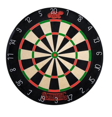 The World’s first and finest bladed dartboard. Premium African conditioned self-healing sisal bristles are packed to optimal depth and density for outstanding durability and infused with quality eco-inks for low glare, colour-fast surface with great visibility. The Bandit full size 18″ x 1.5″ dartboard meets World Dart Federation specs, so you’re always up for the competition. Bandit boards are easy to install, with Shot’s own innovative one-component bracket system bracket system in heavy-duty nylon. This also makes it stronger and more stable than conventional steel dartboard mounting brackets. Its unique interlocking design and smooth plastic composite edging mean it’s easy to rotate, for even target wear. The Bandit comes complete with a bonus measuring tape, new stabilising system and darts handbook – for the ultimate steal!