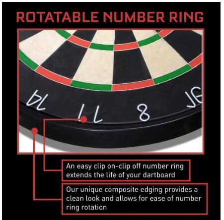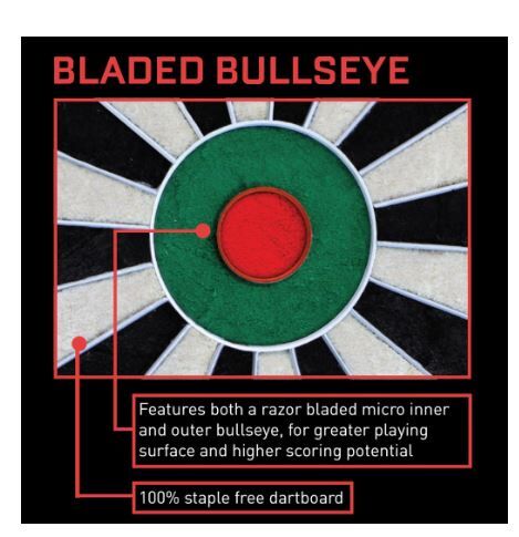 The Bandit owes its cult following to the world’s finest bristle dartboard technology. Its unique, staple-free white razor-bladed wires are more than 50% finer than a standard dartboard, so more darts hit their mark rather than bouncing out.