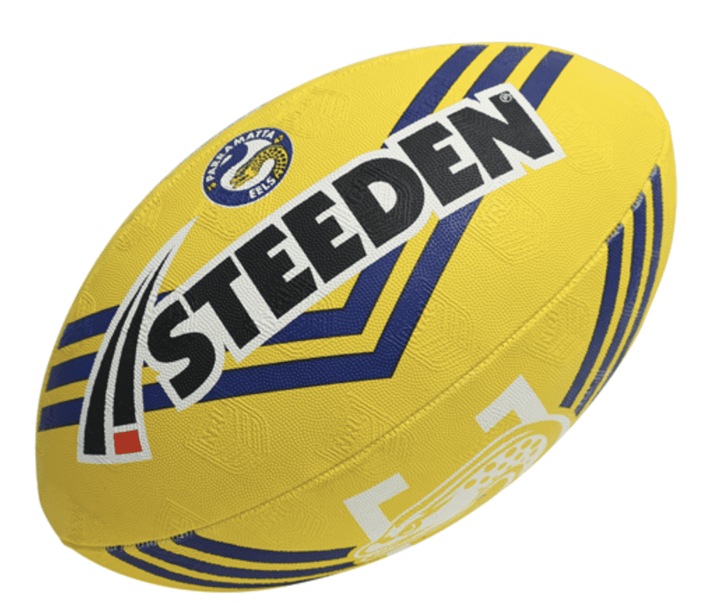 Recreate your favourite Eels set pieces as you kick and pass with this supporter ball manufactured by Steeden.