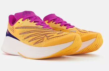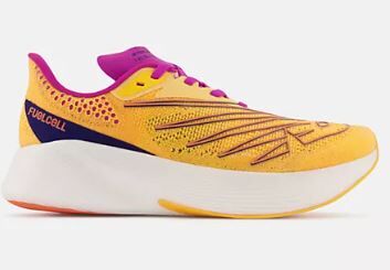 Push past your best time with our FuelCell RC Elite v2. These women’s running shoes feature a FuelCell midsole and full-length carbon fiber plate for energy return, with a mid-foot cutout for weight reduction. The engineered knit upper and streamlined collar construction provide a supportive yet lightweight fit to help you pick up the pace.