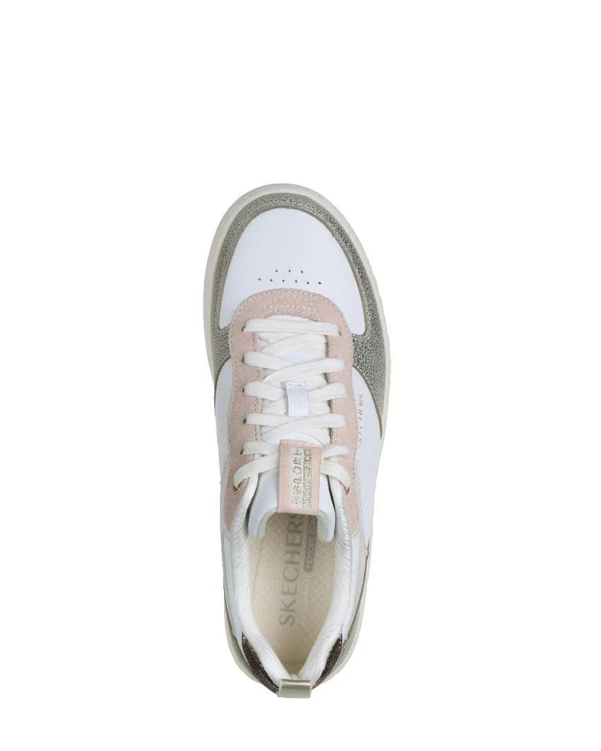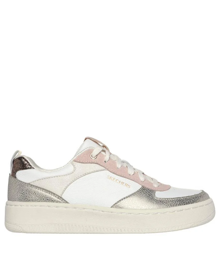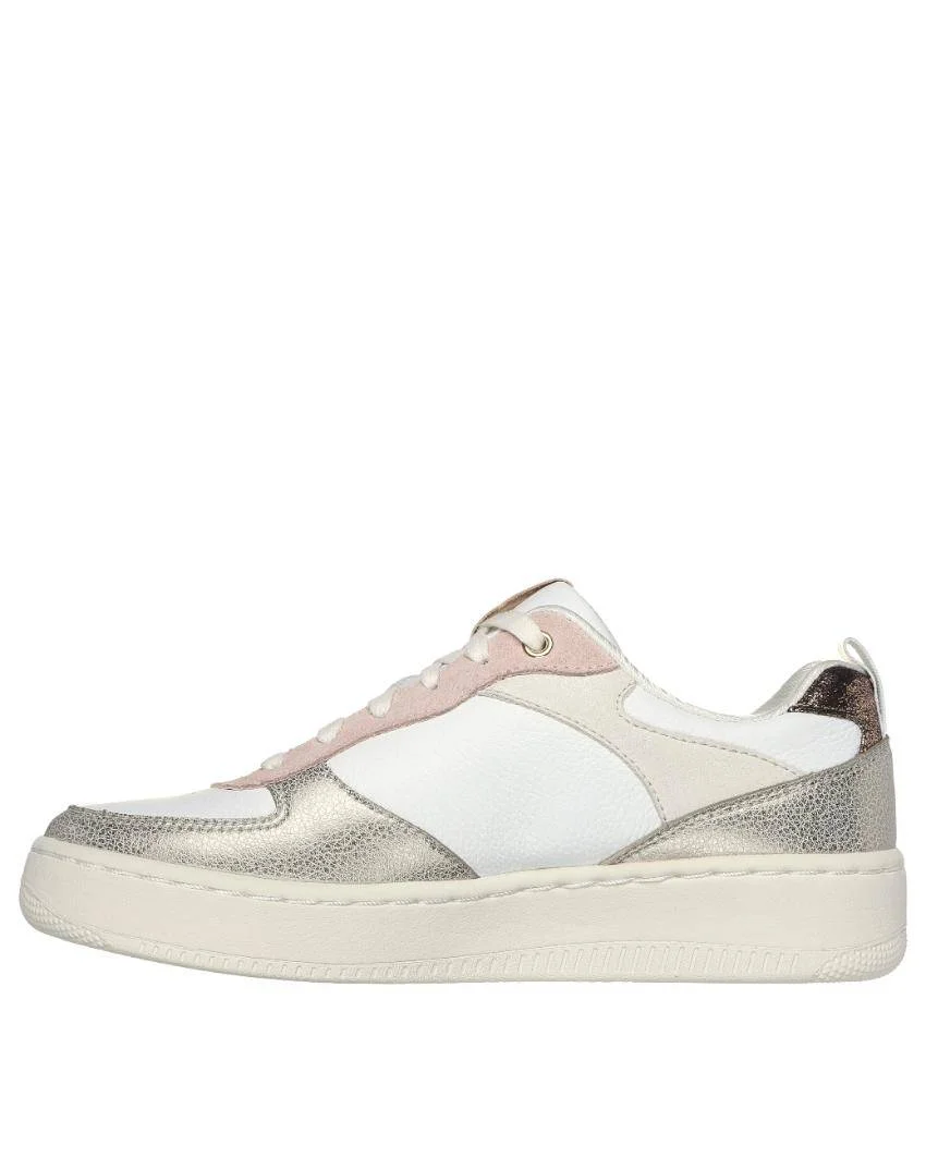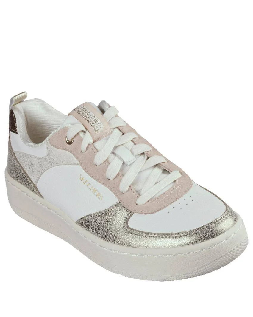 t a shimmery touch on your classic court style look wearing Skechers Sport Court 92 – Sheer Shine. This lace-up design features a metallic leather and suede overly upper with a cushioned Skechers Air-Cooled Memory Foam® insole.