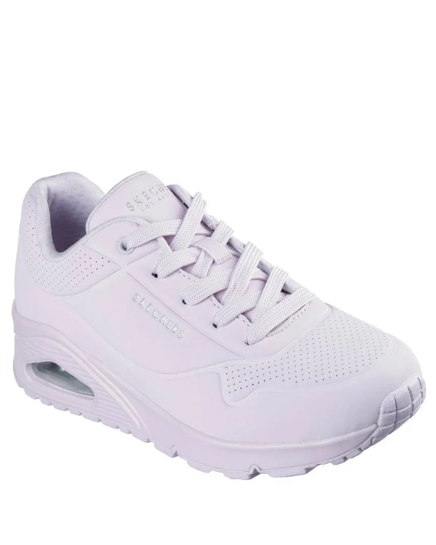 Experience casual comfort and modern style with the Womens Skechers Uno – Stand On Air Lavender, a sneaker designed for everyday wear with standout cushioning technology. The lavender colourway adds a soft, versatile pop to your wardrobe while keeping comfort front of mind.